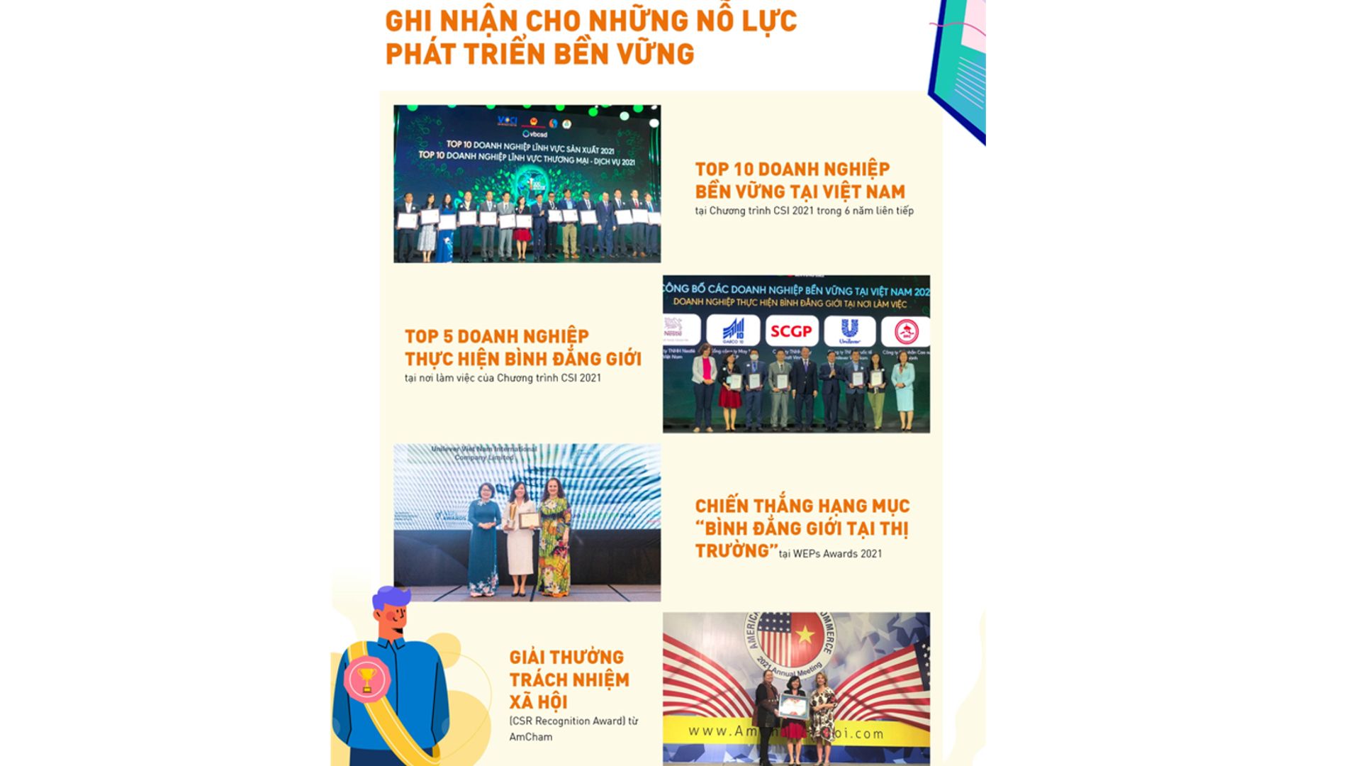 Nhờ vào những nỗ lực không ngừng nghỉ trên hành trình phát triển bền vững, năm 2021, Unilever Việt Nam đã vinh dự nhận những giải thưởng cao quý và uy tín.