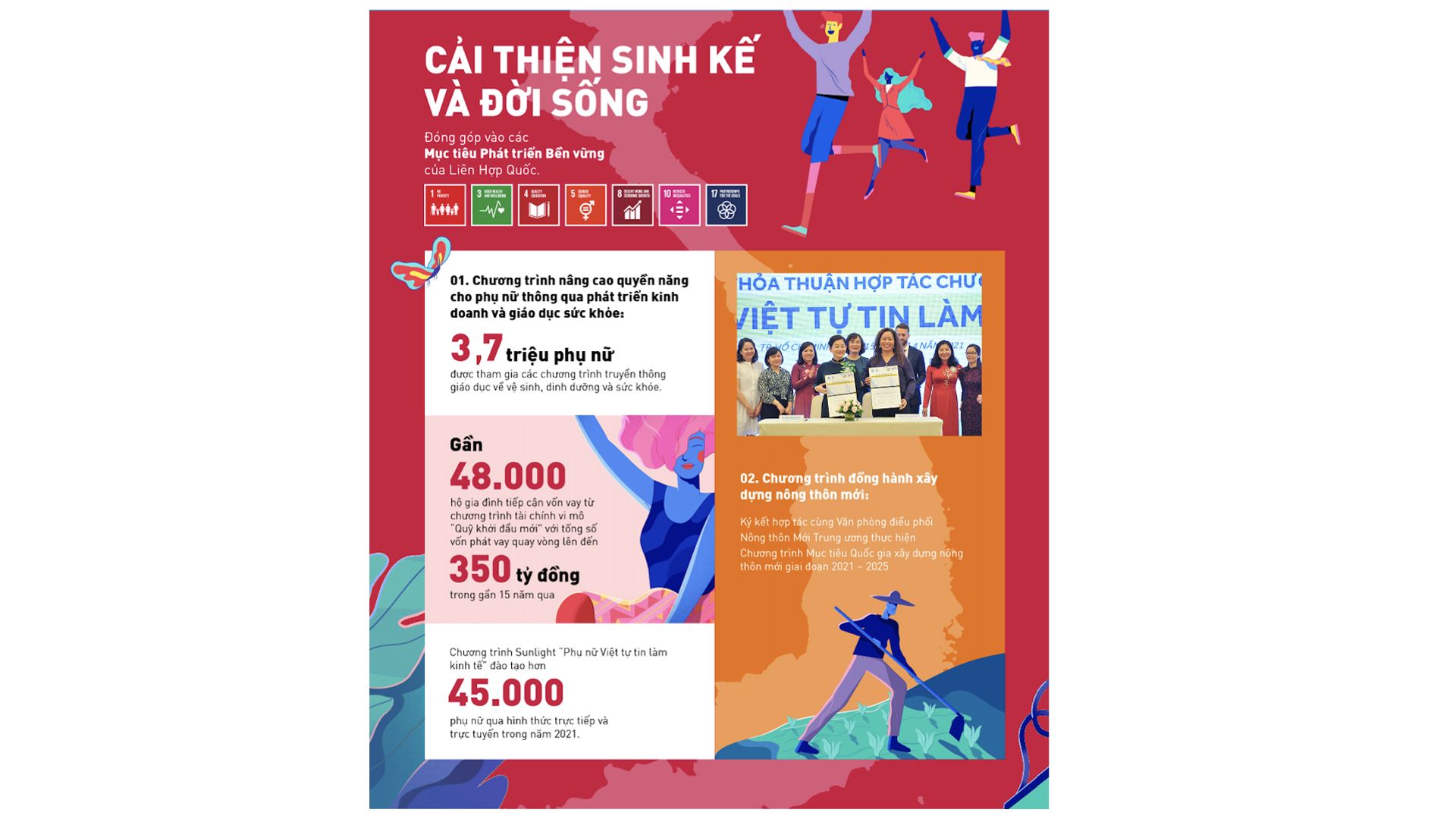 Đồng thời, chúng tôi đã ký kết hợp tác cùng Văn phòng điều phối Nông thôn Mới Trung ương thực hiện Chương trình Mục tiêu Quốc gia xây dựng nông thôn mới giai đoạn 2021 – 2025 với 4 mục tiêu chính: