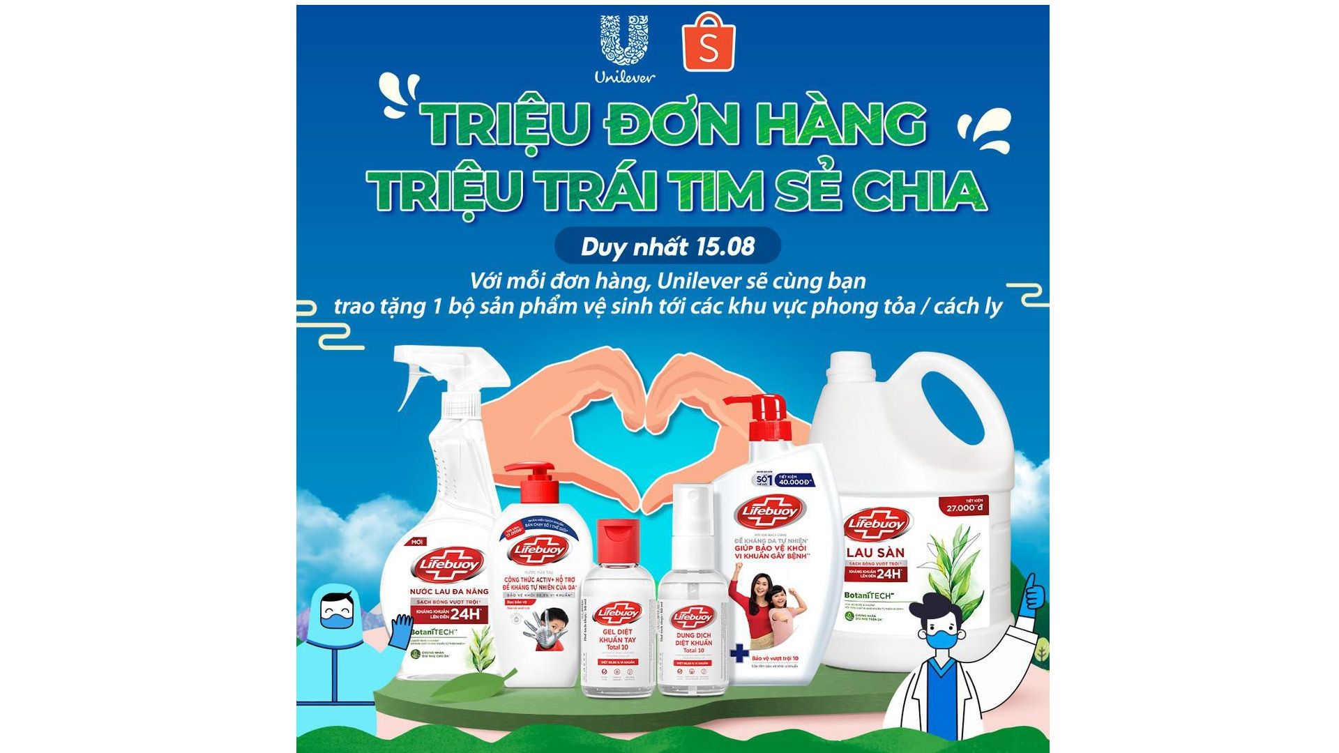 Là một phần trong những nỗ lực chung nhằm cổ vũ một Việt Nam khỏe mạnh hơn, vững vàng hơn trong đại dịch, các nhãn hàng của Unilever đã phát động chương trình "Triệu đơn hàng - Triệu trái tim sẻ chia" với mục tiêu đồng hành cùng hàng triệu người dân Việt Nam.