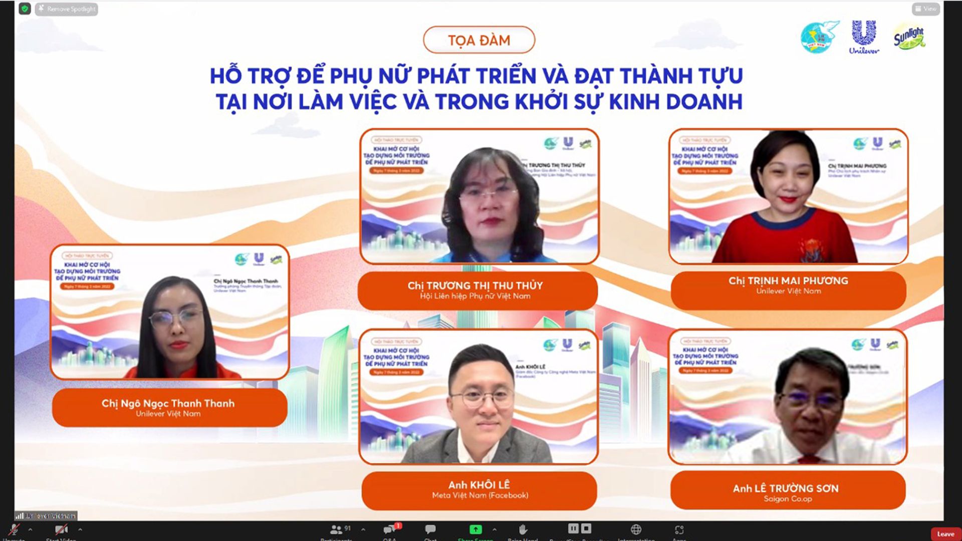'Buổi hội thảo trực tuyến “KHAI MỞ CƠ HỘI, TẠO DỰNG MÔI TRƯỜNG ĐỂ PHỤ NỮ PHÁT TRIỂN” do Unilever Việt Nam khởi xướng hướng đến tôn vinh những giá trị của phụ nữ Việt, chào mừng ngày Quốc Tế Phụ Nữ 8/3 và chúc mừng những bước tiến trên chặng đường nâng cao quyền năng phụ nữ thông qua những câu chuyện truyền cảm hứng về nỗ lực và thành công trong sự nghiệp và làm kinh doanh của phụ nữ.