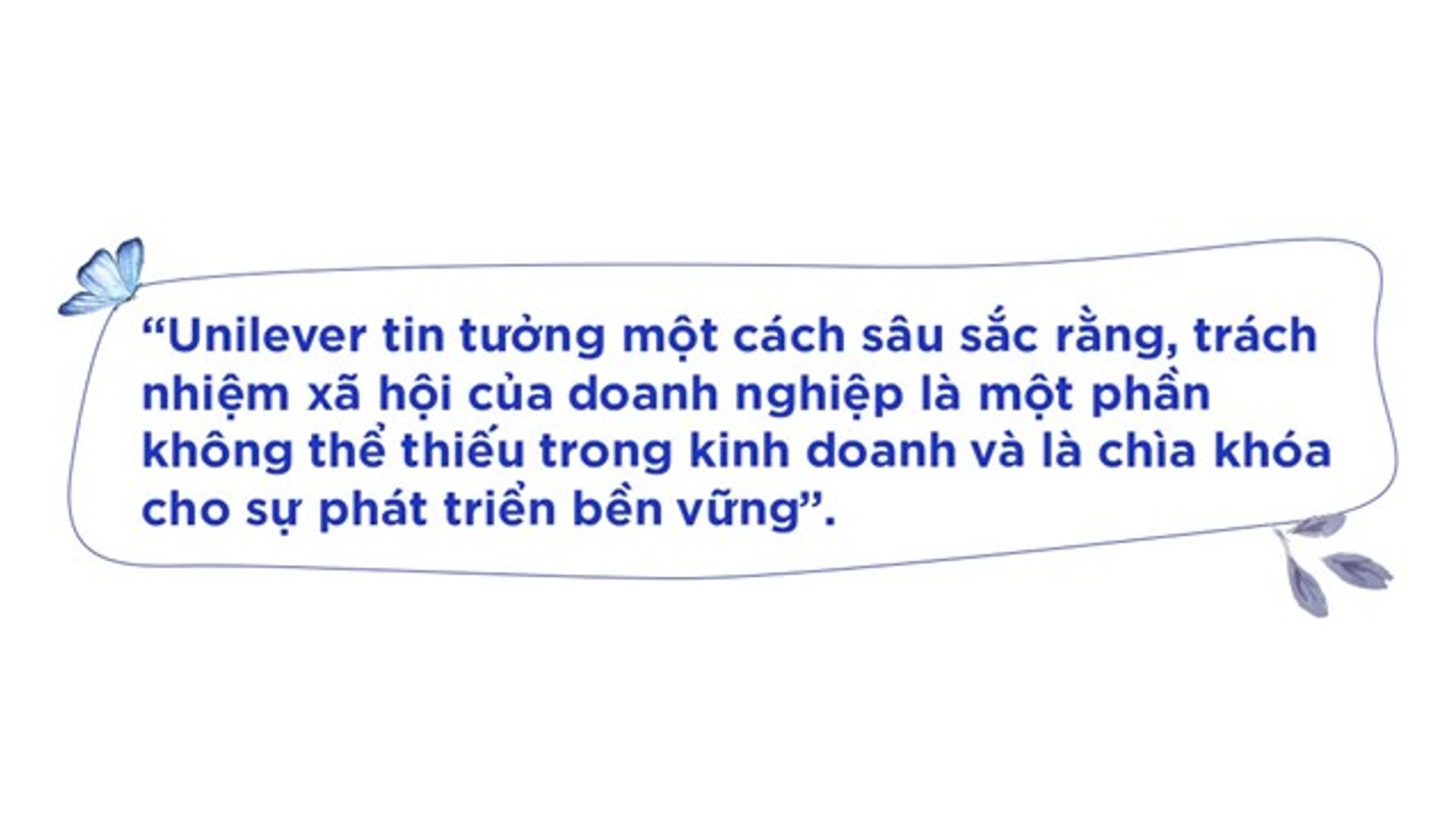 Từ hoạt động sản xuất kinh doanh đến các chương trình hỗ trợ cộng đồng, Unilever đều cho thấy nỗ lực thể hiện trách nhiệm đối với bảo vệ môi trường và nâng cao chất lượng sống của người dân. Công ty cũng sẽ khẳng định mạnh mẽ hơn về tầm nhìn trở thành một trong những đơn vị tiên phong tại Việt Nam đẩy mạnh chuyển đổi sang mô hình kinh tế tuần hoàn và phát triển bền vững.
